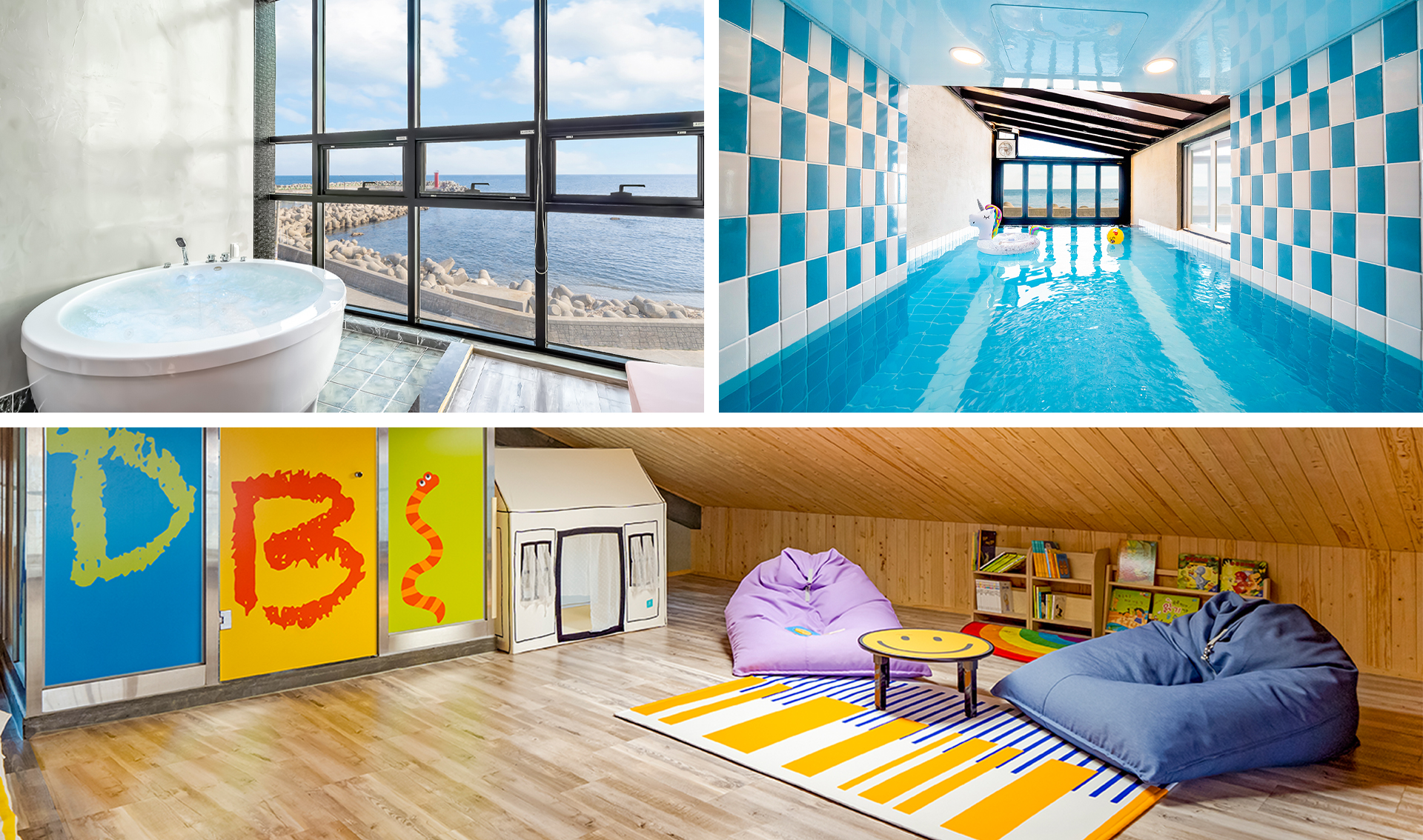 문무대왕키즈풀빌라는 사계절 이용 가능한 개별수영장과