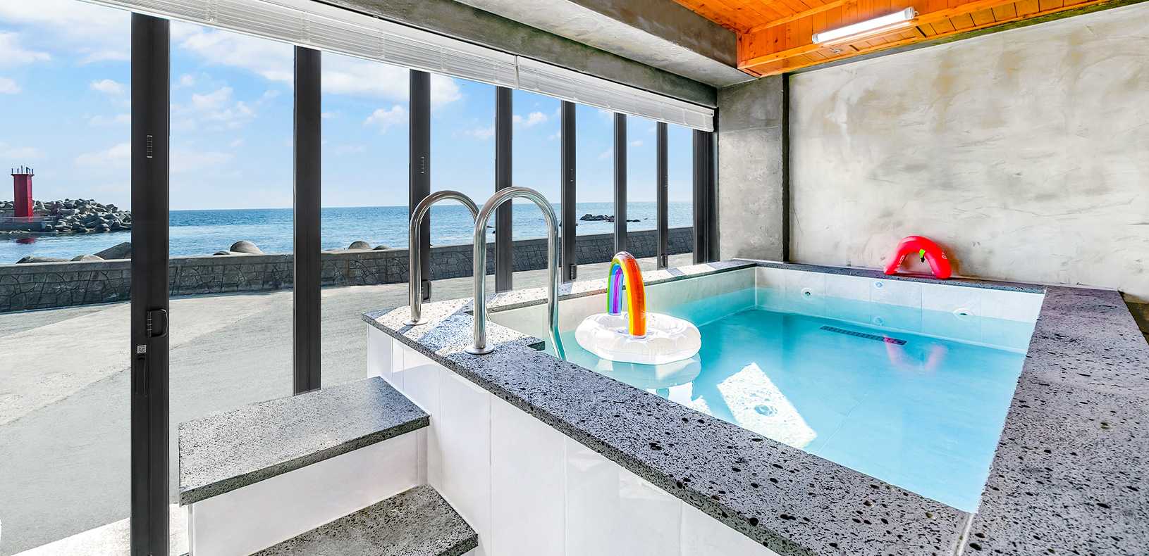 오션뷰를 바라보며 몸의 피로를 풀 수 있는 스파,