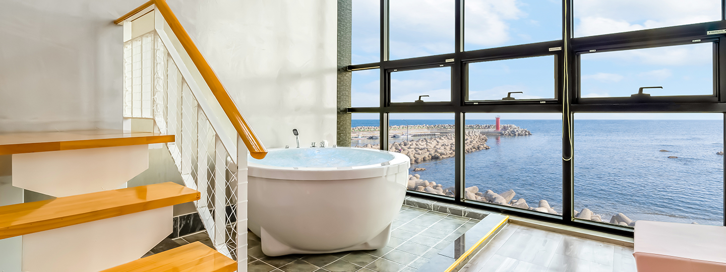 푸르른 바다를 파노라마로 바라보며 피로도 풀 수 있는